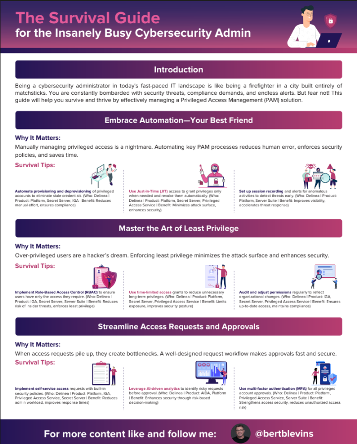 Managing privileged access doesn’t have to be an overwhelming task. By following these survival tips, you can secure your environment while staying sane in the process. Cybersecurity is a marathon, not a sprint—so pace yourself, automate where possible, and always stay one step ahead of attackers. Happy securing!